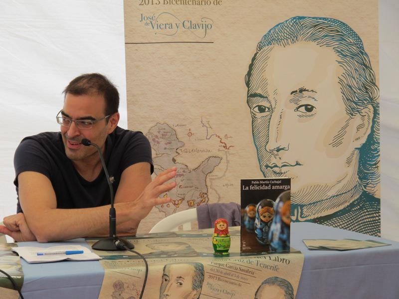 Pablo Martín Carbajal en una presentación de «La felicidad amarga» en Canarias